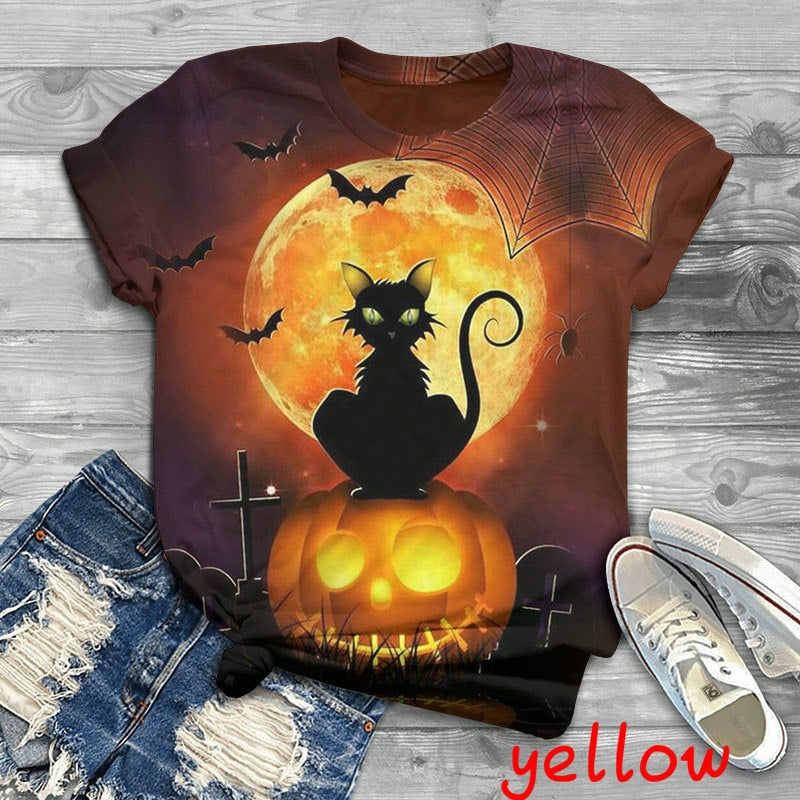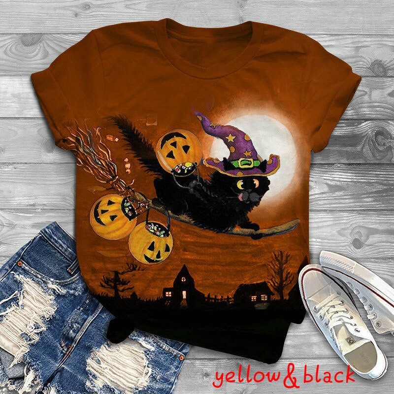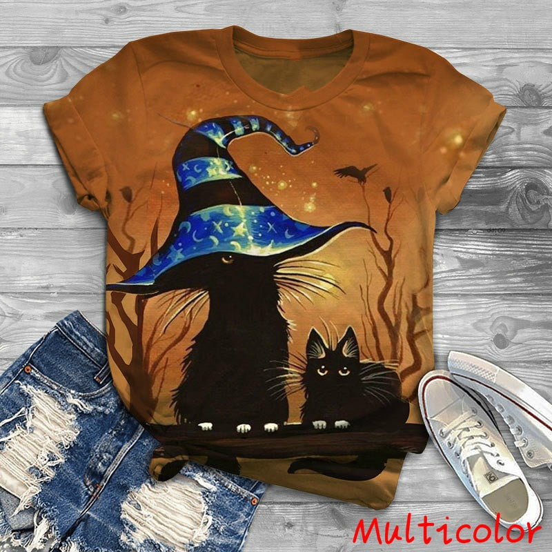 Cat Printing T Shirt Casual Tops Women Festival Clothes